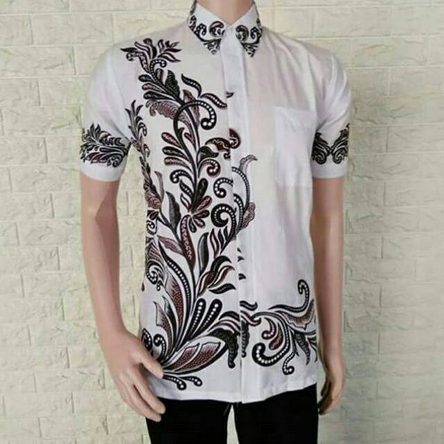 Name: Baju Batik Kemeja Cowok Kemeja Putih Motif Kembang Abstrack Elegant Hem Lengan Pendek