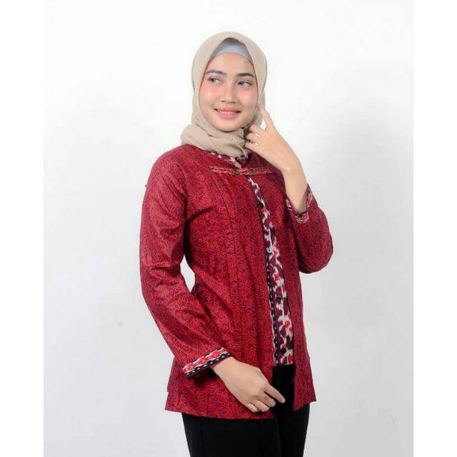 Name: Blouse Batik Kerja Blus Batik Wanita Cewek Perempuan Warna Merah Maroon Big Jumbo Xxl Marun Ld 110