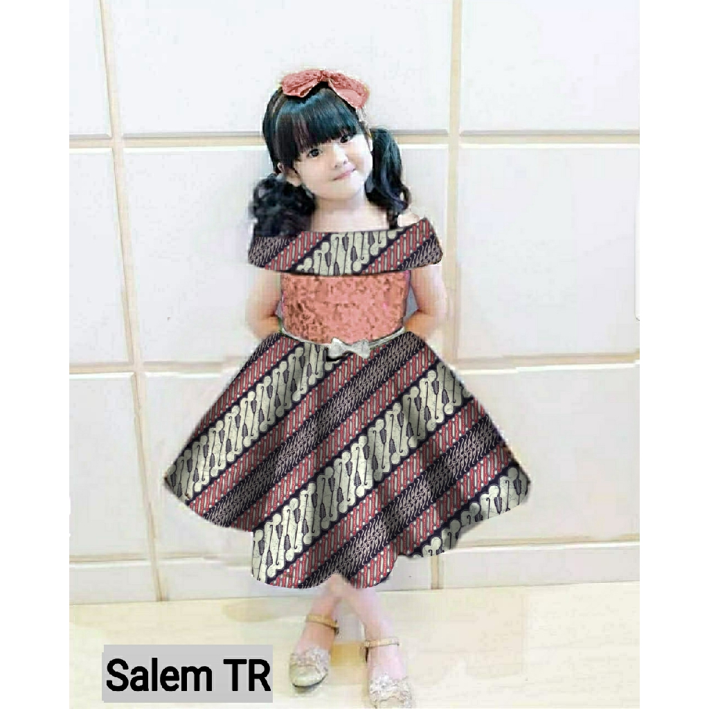 Dress bahan brokat kombinasi batik ada pita pinggang size 2-3 th tergantung anak. Ld 46 pj 41cm