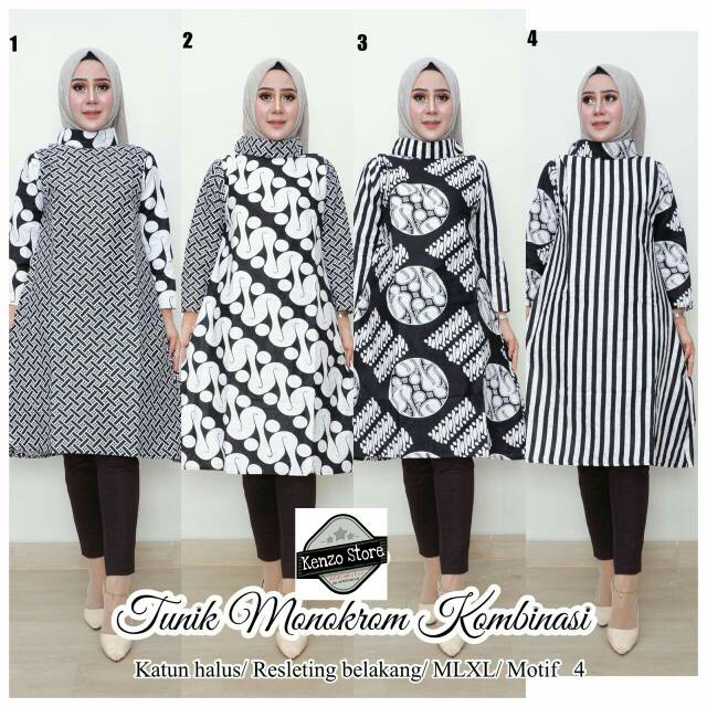 Name: Tunik Monochrome Kombinasi Longblouse Batik Minidress Shibori Parang Barong Seragam Kerja Kantor